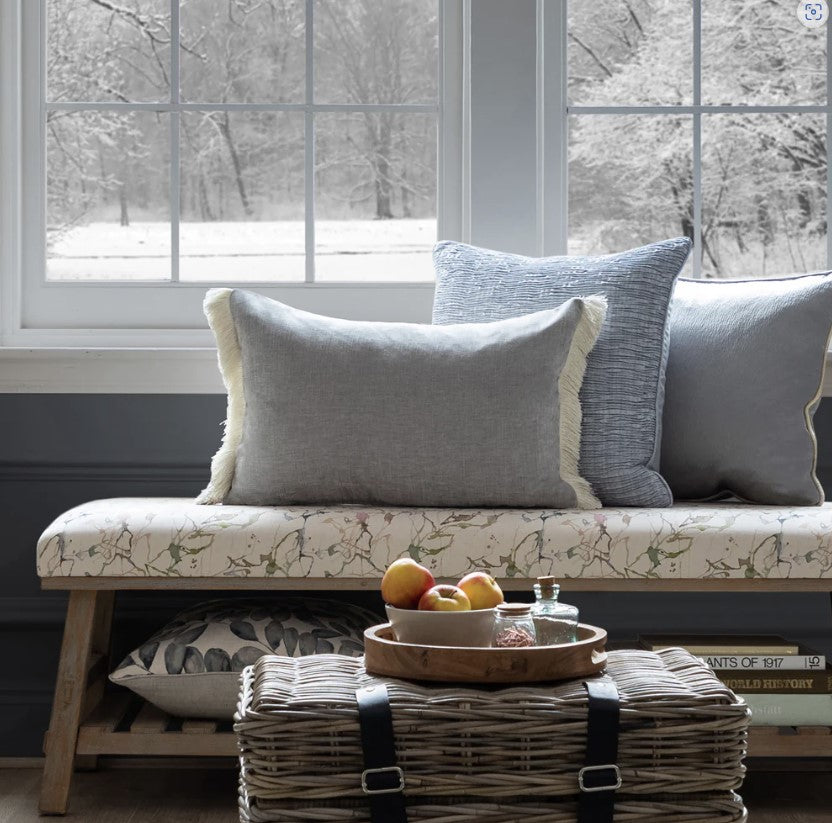Isernia Mist - Our Voyage Maison Isernia Cushion is the perfect way to add a touch of luxury to your home. The duck feather inner provides comfort and support, while the shiny ruche trim gives it a stylish finishing touch. Made from antique chenille, this cushion is soft to the touch and will look great in any room.